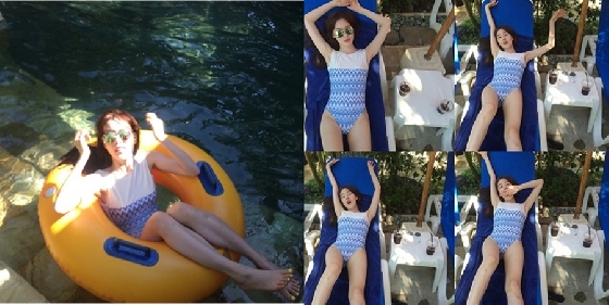 앞서 한선화는 지난달 31일 자신의 인스타그램에 4분할 된 사진 한 장을 게재하기도 했다. 공개된 사진 속 한선화는 파란색 선베드에 누워 파란색 원피스 수영복을 입은 채 군살 없이 매끈한 몸매를 한껏 뽐내고 있다.