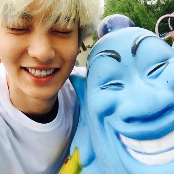 찬열은 4일 오전 자신의 인스타그램에 "지니 따라 배시시"라는 글에 "용마랜드"라는 해시태그를 달아 사진 한 장을 게재했다.