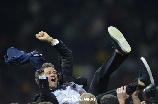 바르셀로나 루이스 엔리케(45) 감독이 7일(이하 한국시간) 독일 베를린에 위치한 올림피아 스타디온에서 열린 '2014-2015 챔피언스리그' 유벤투스와의 결승전에서 3-1로 승리한 뒤 기쁨을 감추지 못했다. 이날 승리로 바르셀로나는 트레블(프리메라리가, 코파 델 레이, 챔피언스리그 우승)을 달성했다.