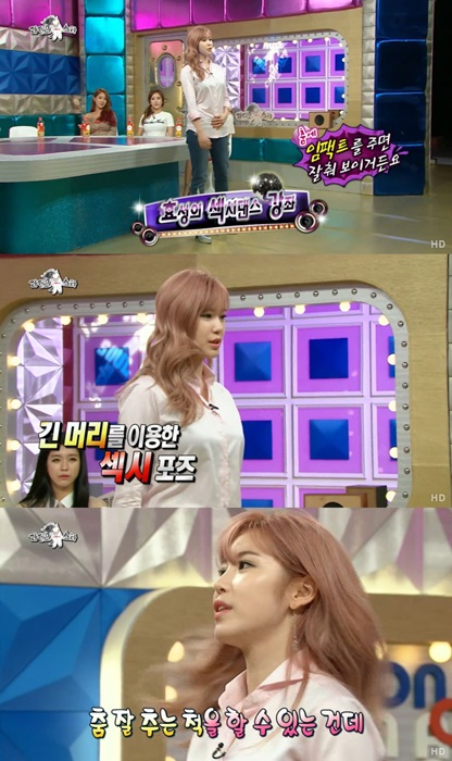 걸그룹 시크릿의 전효성이 방송인 예정화와 치어리더 김연정에 섹시댄스 레슨을 했다.