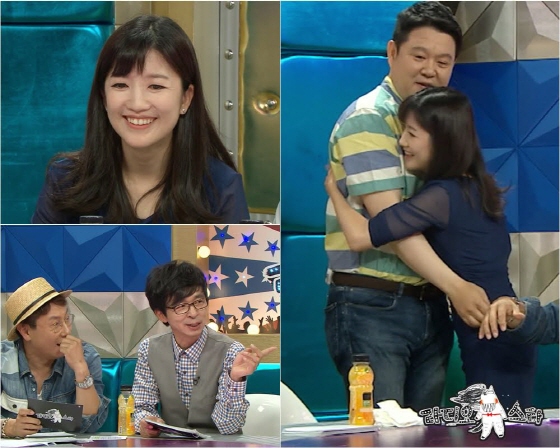 이와 함께 공개된 스틸 속에는 장소연이 김구라를 꼭 껴안고 있는 모습이 담겨있어 눈길을 끈다. 장소연은 사전 인터뷰에서 "제가 키 큰 남자를 좋아해서 김구라 씨는 진짜 한 번 안아보고 싶다"고 밝혔고, 이에 녹화 도중 팬 미팅(?)이 펼쳐진 것. 이때 장소연은 김구라 어깨까지 토닥거리며 소원성취에 만족감을 드러냈다는 후문이다.