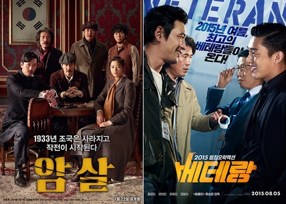 '암살'과 '베테랑'이 나란히 누적관객 800만-100만 관객을 돌파했다.