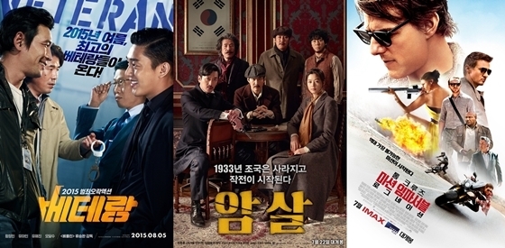 극장가를 휘어잡고 있는 영화 '베테랑'과 '암살', '미션 임파서블:로그네이션'(이하 '미션 임파서블5')이 나란히 기록 경신을 하며 흥행 가도를 달리고 있다.