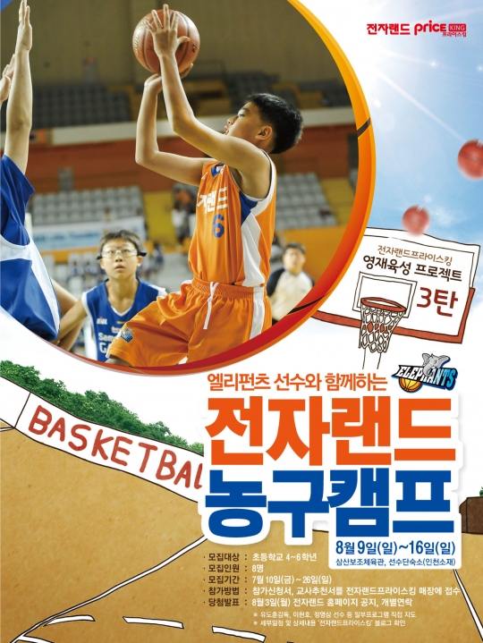 가전 양판점 전자랜드 프라이스킹과 구단이 함께 마련한 이번 농구캠프는 7월 중순부터 전국 매장과 온라인을 통해 참가신청을 받았으며, 최종 10명의 유망주를 선발했다.