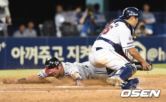 3-3으로 맞선 1사 3루, 정성훈이 스퀴즈 번트를 댔다. 방향이 투수 정면으로 너무 정직했다. 3루 주자 오지환은 대쉬를 멈췄고 투수 오현택이 1루에 송구했다. 그런데 그틈을 노려 오지환이 홈으로 파고 들었다. 합의판정 끝에 세이프로 인정됐고 결승점이 됐다.