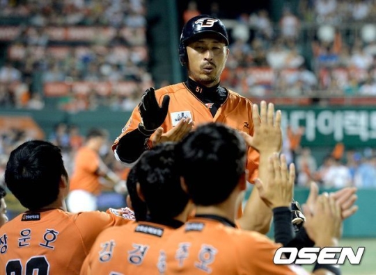 이글스파크에 파도타기 응원이 돌기 시작했다. 이어 2사 후 강경학이 볼넷으로 출루했다. 다음 타자는 김경언. 4-4 동점 상황. 이날 경기 전까지 선수 생활 15년 동안 매년 한 자릿수 홈런밖에 치지 못한 그였다. 초구 스트라이크. 2구째. 김경언의 배트가 힘차게 돌아갔고, 이글스파크가 떠나갈 듯한 함성이 울려퍼졌다. 김경언의 우중간 역전 투런포가 터졌다.