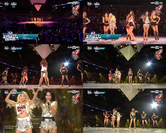씨스타는 '쉐이크잇'에 맞춰 골반을 강조한 댄스와, 탄력적인 보디라인으로 시선을 사로잡았다.