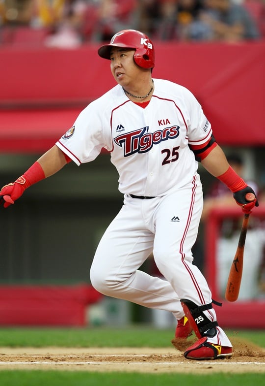 여기서 김기태 감독이 움직였다. 대주자 카드였다. 이범호를 윤완주로, 나지완을 고영우로 바꿨다. 단타 하나만 나와도 2점을 뽑아 역전을 만들겠다는 계산이 깔린 대주자 기용이었다.