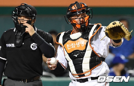 한화 이글스의 제이크 폭스가 2경기 연속 선발 포수 마스크를 쓴다.