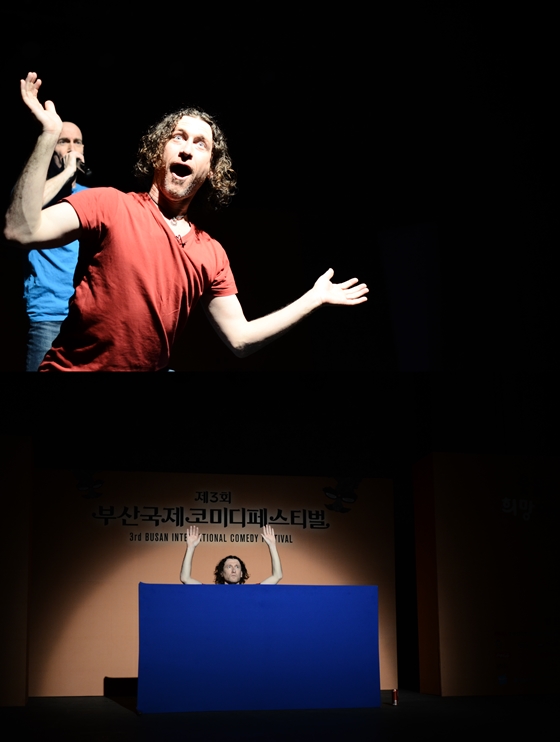 제3회 부산국제코미디페스티벌에 참여한 해외 공연팀 엄블리컬 브라더스의 공연 모습/사진제공=부산국제코미디페스티벌