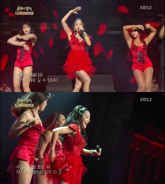 프랑스에서 의상을 공수해올 정도로 무대에 남다른 열정을 보인 바다는 심수봉의 '백만 송이 장미'를 열창했다. 바다는 흰색 배경에 붉은색 포인트 컬러가 들어간 의상을 입고 등장, 몽환적인 분위기에서 무대를 시작했다.