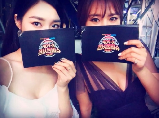 걸 그룹 소녀시대(태연 윤아 유리 티파니 써니 수영 효연 서현)의 티파니가 유리와 함께 MC 인증 사진을 찍었다.