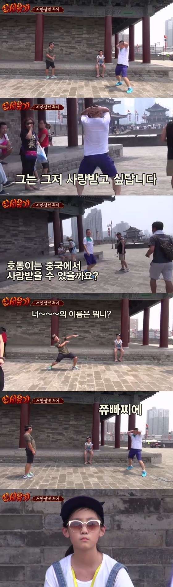 이후 강호동은 성벽 위에서 한 중국 소녀를 발견했다. 강호동은 "이 아이를 웃길 수 있나 보자"며 아이 앞에서 '쭈빠찌엔' 안무를 선보였다. 강호동은 혼신의 힘을 다해 저팔계 안무를 췄지만 소녀는 무표정으로 일관했다. 강호동의 거듭된 안무에도 소녀의 얼굴은 한 점 흐트러짐이 없었다. 뒤늦게 상황을 파악한 강호동은 무표정한 소녀에 고개 숙여 사과했다.