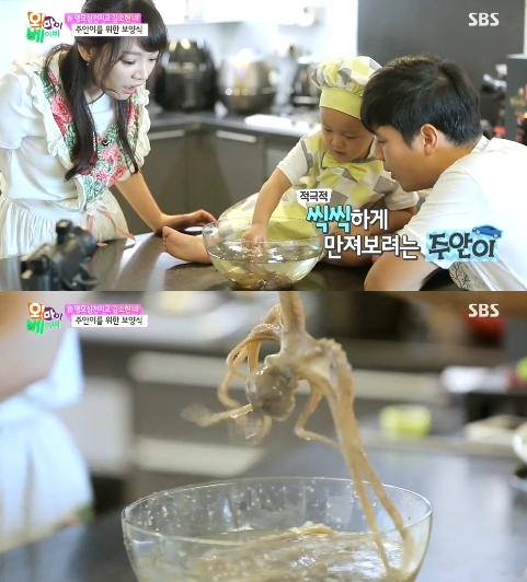 이날 방송에서 김소현은 주안이의 보양식으로 갈비와 낙지를 넣은 '갈낙탕'을 만들었다. 주안이는 낙지를 보며 "여기 눈 떠서 무서워"라고 기겁했다.