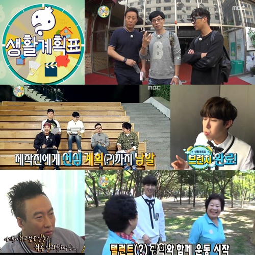 19일 방송된 MBC '무한도전'에서는 생활계획표 특집으로 꾸며졌다. 이번 편은 유재석, 박명수, 정준하, 하하, 정형돈, 광희가 6개월 정도 전에 찍었던 오프닝으로 멤버들이 하루 동안 자신이 직접 짠 계획대로 하루를 살아가는 미션이었다.