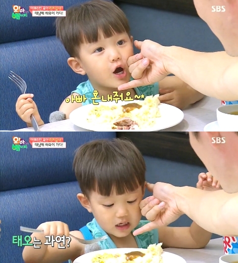 이날 방송에서 태오는 아빠 리키김의 말을 잘 듣지 않았다.