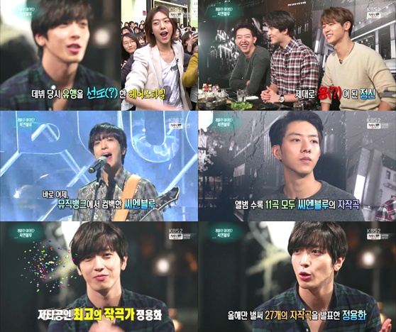 인터뷰도중 정용화는 "데뷔 당시 정신이 헤어스타일이 유행을 선도했다. 데뷔에 비해 지금 제대로 용됐다"라고 밝혀 시청자에게 웃음을 안겼다.