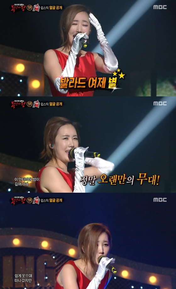 한편 별은 지난 20일 방송된 MBC '일밤-복면가왕'에 복면가수 '립스틱 짙게 바르고'로 출연했다. 별은 1라운드 듀엣곡 대결에서 '오메, 단풍 들겄네'와 에코의 '행복한 나를'을 나눠 불렀다.