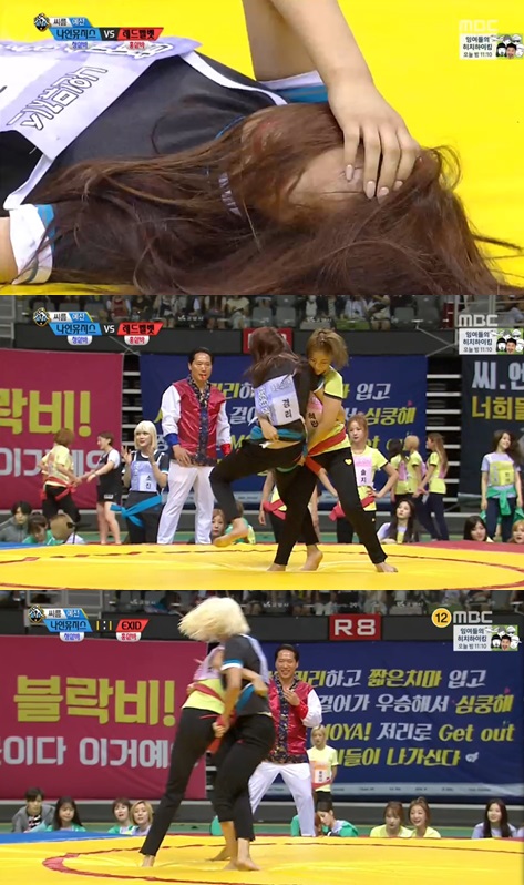 28일 오후 방송된 MBC 추석특집 '2015 아이돌스타 육상·씨름·농구·풋살·양궁 선수권대회'(이하 '아육대')에서는 걸 그룹 멤버들의 씨름 대결이 펼쳐졌다.