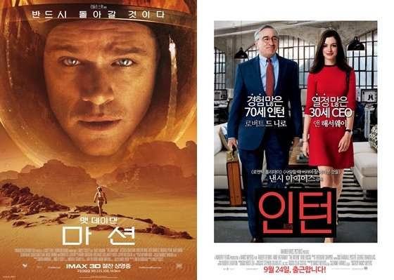'마션'의 독주와 '인턴'의 뒷심에 비해 한국영화 성적은 초라하다.