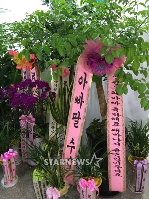 수지가 아버지의 태권도장 개장에 애교 가득한 메시지를 담아 축하 화분을 보냈다.