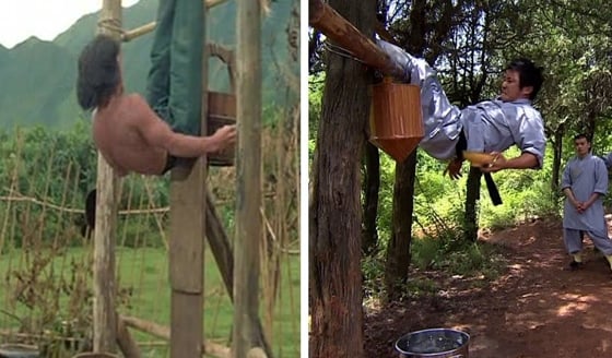 영화 '취권'에서 성룡이 거꾸로 매달려 윗몸일으키기로 물을 떠 옮기며 수련하는 장면은 실제 소림사에서도 전통이 깊은 훈련 중 하나이다. 일상생활에서도 훈련을 게을리 하지 않은 소림사 무승들이 처음에는 빨래 대를 이용해 수련을 한 것이 이 훈련의 시초라고 전해진다.