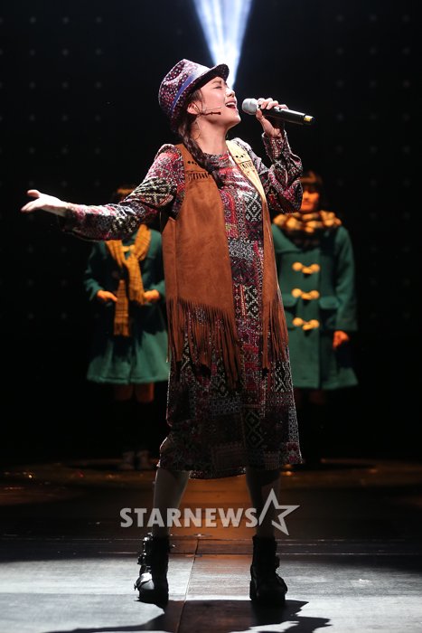 배우 박현지가 18일 오후 서울 서대문구 이화여대 삼성홀에서 열린 뮤지컬 '젊음의 행진' 프레스콜에 참석해 무대를 선보이고 있다.
