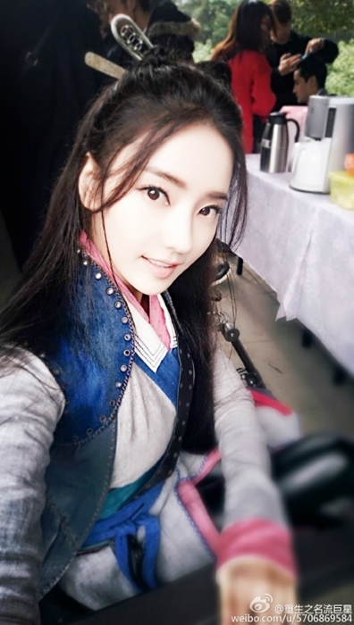 한채영은 지난 18일 자신의 웨이보(SNS)에 중국 드라마 '중생지명류거성' 촬영 중 찍은 사진을 게재했다.