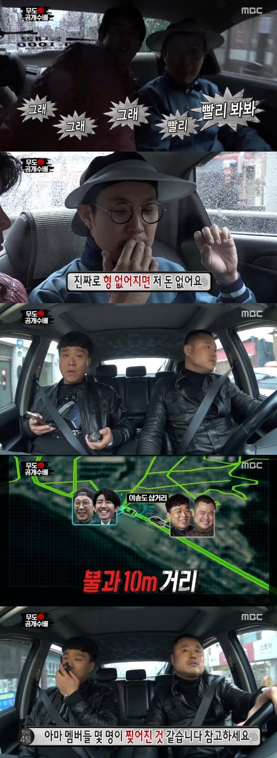 '무한도전'에서 형사4팀이 하하와 광희를 놓쳤다.