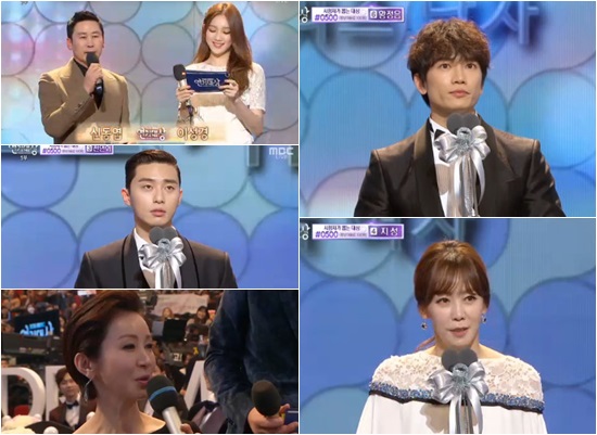 대상 선정은 100% 시청자 투표로 진행됐다. 지성은 황정음, 전인화, 김희선, 김정은, 차승원 등 쟁쟁한 경쟁자들을 물리치고 대상을 수상하는 기쁨을 누렸다. 이로써 지성은 지난 1999년 데뷔 후 16년 만에 첫 대상 트로피를 품는 쾌거를 이뤘다.