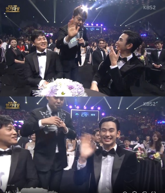 드라마 '프로듀사'의 주연 김수현과 차태현이 2015 KBS 연기대상 시상식에 나란히 참석했다.