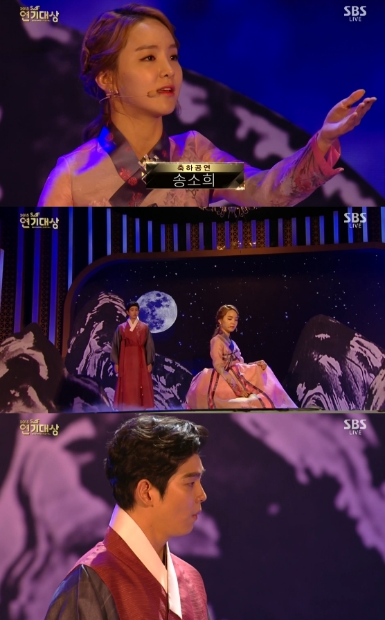 배우 윤균상과 국악소녀 송소희가 2015 SBS 연기대상에서 콜라보레이션 무대를 꾸몄다.