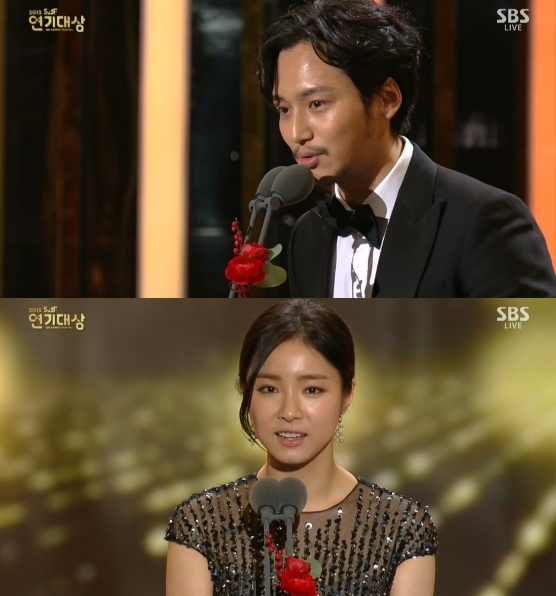 이들은 31일 오후 8시 55분부터 서울 삼성동 코엑스 D홀에서 진행된 2015 SBS 연기대상에서 장편시리즈 부문 남녀 우수연기상을 받았다.