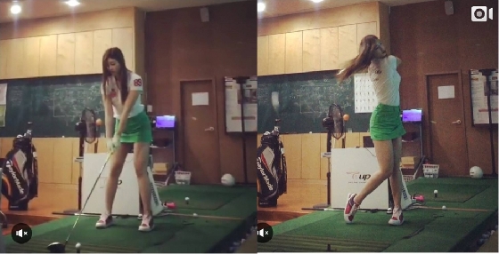 공개된 사진에는 흰색 티와 짧은 녹색 치마를 입은 유승옥이 골프 스윙 연습을 하는 모습이 담겨있다. 운동으로 다져진 유승옥의 탄탄한 허벅지가 시선을 사로잡는다.