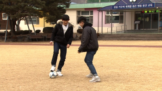 '위대한 유산' MC그리와 환희가 축구대결을 펼친다.