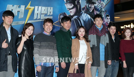 EBS 번개맨 멤버들이 3일 오후 서울 성동구 CGV 왕십리점에서 열린 영화 '번개맨' VIP시사회에 참석해 포즈를 취하고 있다.