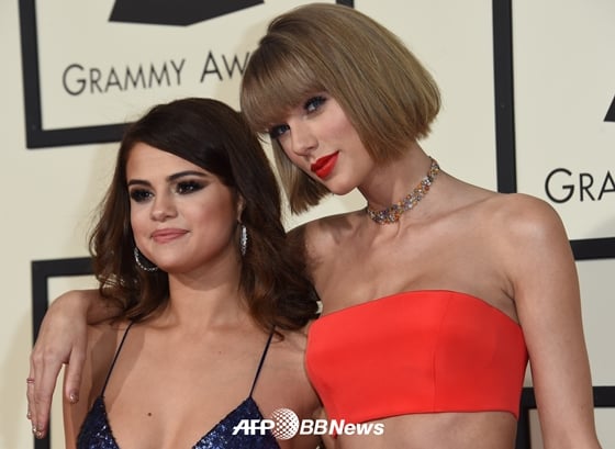테일러 스위프트는 15일 오후 (현지시간)미국 LA 스테이플스 센터에서 열리는 제58회 그래미 어워드를 앞두고 열린 레드카펫에 셀레나 고메즈와 함께 올라 포즈를 취하며 눈길을 모았다.