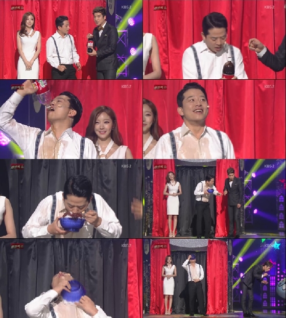 28일 오후 방송된 KBS 2TV 예능 프로그램 '개그콘서트'의 '웰컴백쇼'에서는 10초 만에 먹기가 시도됐다.