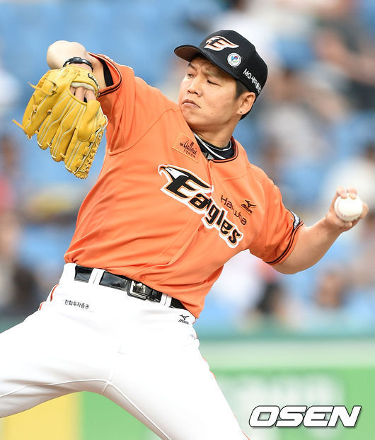 한화는 선발 김용주(3이닝 4실점), 정재원(2⅓이닝 3실점), 김경태(1⅔이닝 1실점)에 이어 네 번째 투수로 박정진을 내보냈다. 이미 팀은 1-8로 크게 뒤지고 있는 상황. 경기 전 김성근 감독은 이날 박정진의 투입을 예고했고, 최종 투수로 투입해 또 한 번 컨디션을 점검했다.