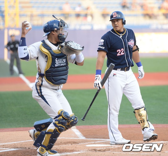 홍성흔은 13일 창원 마산구장에서 열린 NC 다이노스와의 '2016 타이어뱅크 KBO리그' 시범경기에 6번 지명타자로 선발 출장했다.