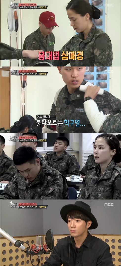 이날 야전간호교육을 받으러 간 멤버들은 적나라하게 표현된 모라지 셋을 보고 기겁했다. 여군들은 "모형이 너무 사실적이다. 다쳤을 때 실제 상황이 떠올라 보기 힘들었다"고 털어놨다.