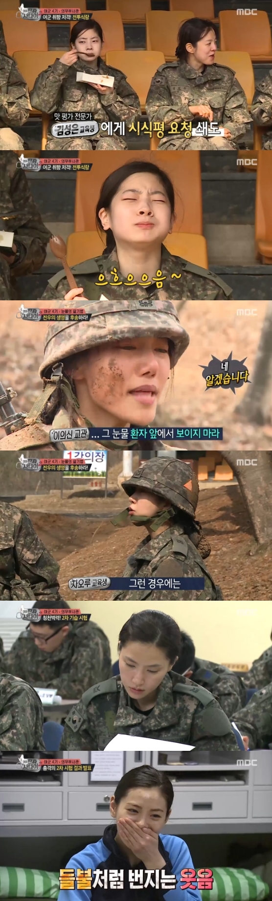 환자 이송 훈련에서 호되게 혼난 여군들이었지만 점심으로 전투식량을 먹을 때만은 다 잊고 행복해했다. 김성은과 트와이스 다현은 먹방에 출연하는 듯 맛 표현에 열을 올렸다. 나나는 전투식량을 다 먹은 뒤 시원하게 트림을 하며 웃었다. 힘든 훈련에도 주눅이 들지 않는 여군들은 자칫 가라앉을 수 있는 분위기를 살렸다.