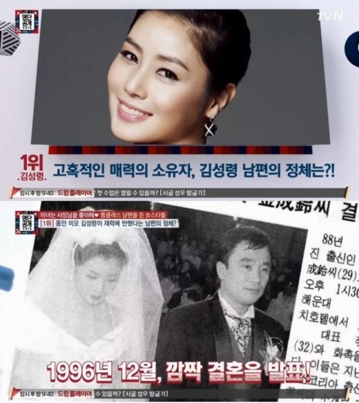 배우 김성령이 톱클래스 남편을 둔 여자 스타 1위에 등극했다.