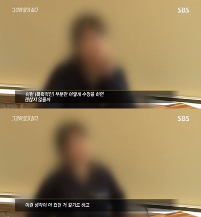 이에 제작진은 "폭력에도 헤어지지 못한 이유가 무었이냐"고 물었다. 이에 피해자는 "폭력적인 부분만 수정하면 괜찮지 않을까하는 생각이 더 컸던 것 같다"고 밝혔다.