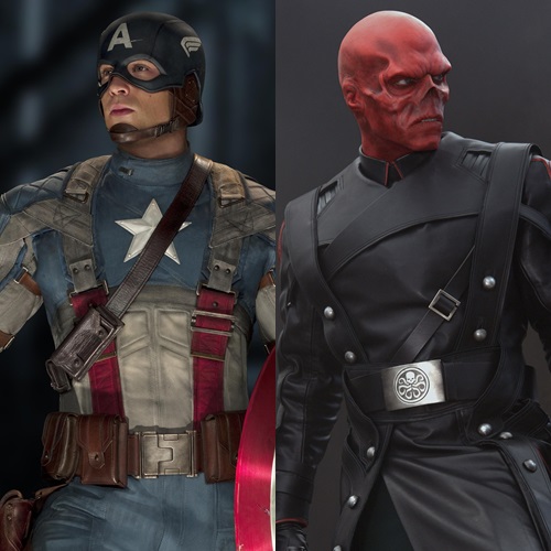 '캡틴 아메리카:퍼스트 어벤져'에서는 캡틴 아메리카와 레드 스컬의 맞대결이 주요 대결 구도로 그려진다. 결국 전투에서 캡틴 아메리카는 바다 한 가운데 빠졌다 토니 스타크에 의해 다시 살아난다.