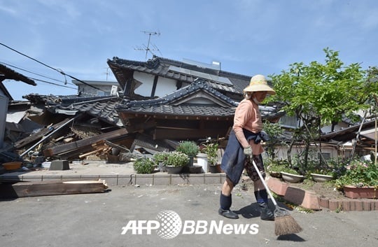 일본 구마모토 현에 발생한 지진으로 JLPGA 골프대회도 취소됐다. 사진은 지진으로 붕괴된 구마모토 현의 한 가옥. /AFPBBNews=뉴스1