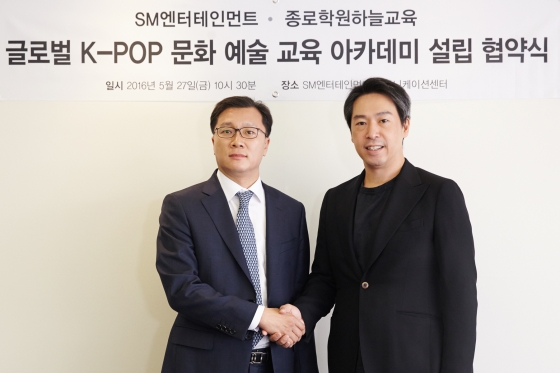 SM엔터테인먼트(이하 SM)가 종로학원하늘교육과 글로벌 K팝 문화 예술 교육 아카데미 설립을 위한 업무 협약을 체결했다.