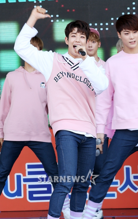 그룹 아스트로 MJ가 28일 오후 서울 마포구 상암월드컵경기장 남문광장에서 진행된 머니투데이 주최 '2016 u클린 콘서트'에 참석해 멋진 무대를 선보이고 있다.