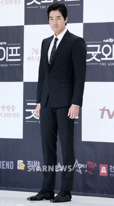 배우 유지태가 29일 오후 서울 영등포구 타임스퀘어 아모리스홀에서 진행된 tvN 금토드라마 '굿와이프' 제작발표회에 참석해 포즈를 취하고 있다.