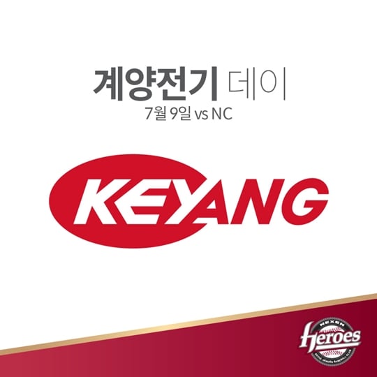 넥센 히어로즈는 9일 오후 6시 서울 고척 스카이돔에서 펼쳐지는 NC다이노스와의 경기에 ‘계양전기 데이’ 이벤트를 실시한다.